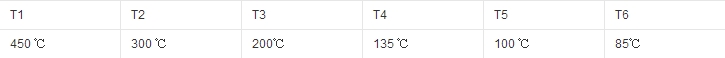 溫度組別:爆炸性環(huán)境用壓力開關(guān)按其**表面溫度劃分為T1-T6組別